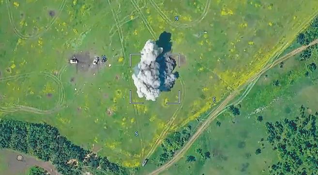 俄国防部5日发布的视频显示一辆乌军车辆在战斗中被炸毁。