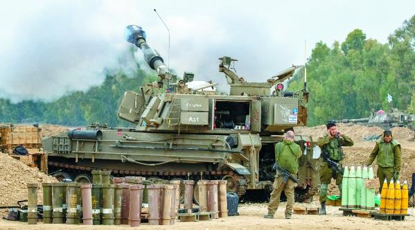 5日,以军士兵在以色列南部使用155毫米自行榴弹炮向加沙地带发射炮弹。 (视觉中国)