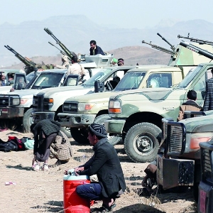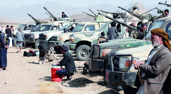 近日,胡塞武装在也门首都萨那准备参加武装游行。(视觉中国)