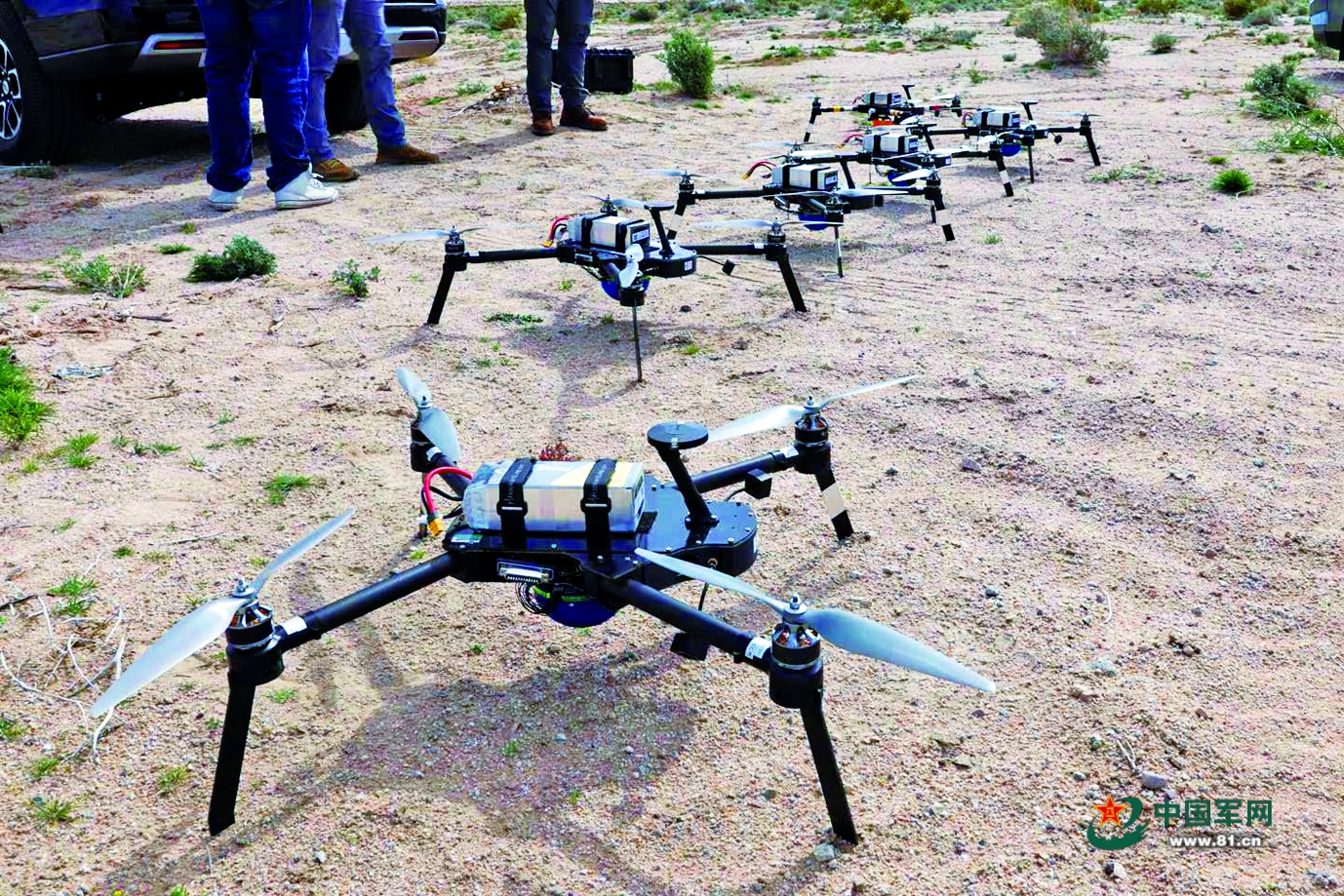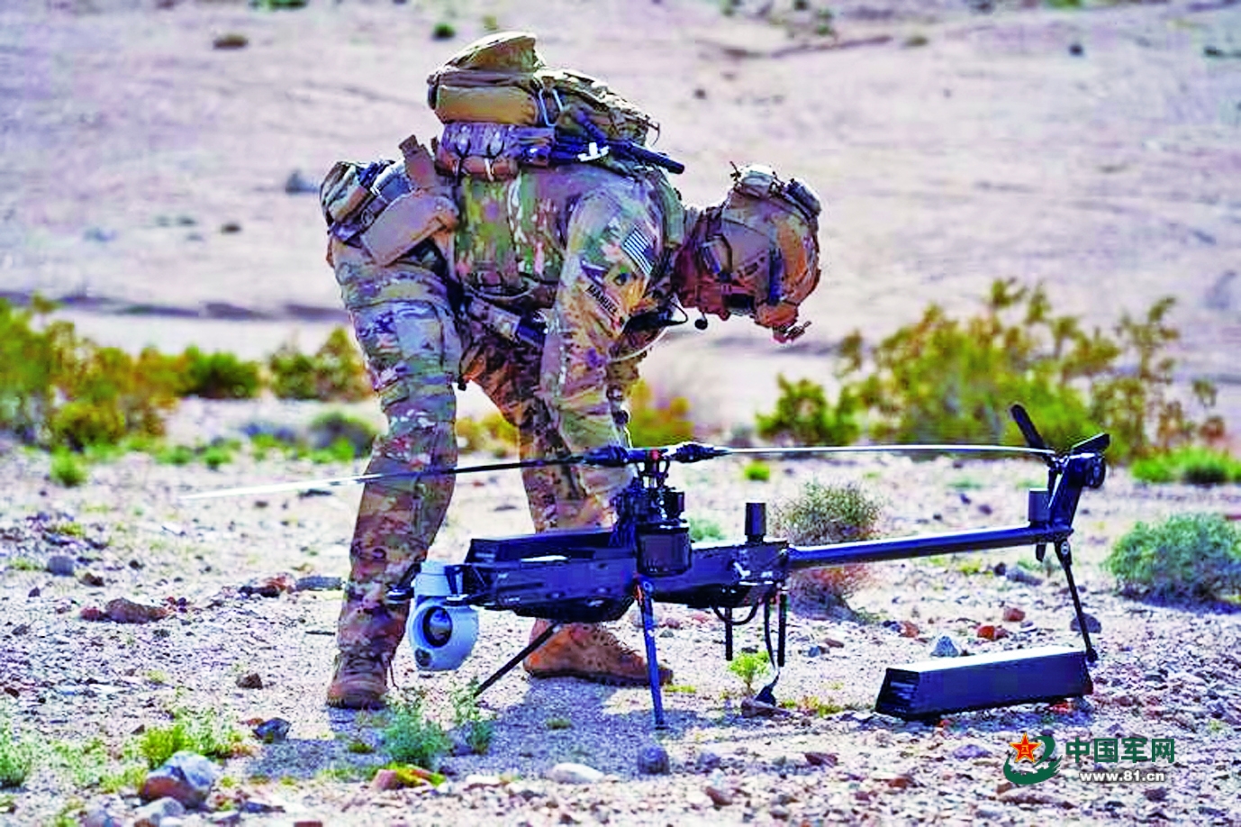 美陆军装备的四旋翼小型无人机。