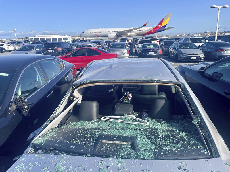 3月7日,美联航一架波音777飞机飞行中轮胎坠落,砸坏地面汽车车窗。(资料图)
