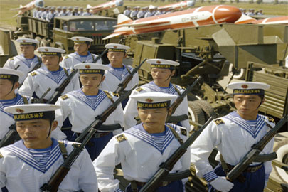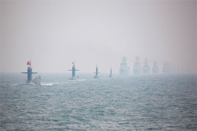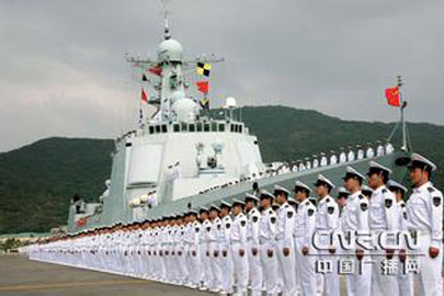 海军在青岛举行海上阅舰式,庆祝人民海军建立60周年。这也是中国首次举行国际阅舰式。