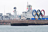 “石家庄”号驶离奥帆中心开赴阅兵海域