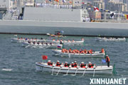 精彩瞬间:紧张激烈的多国海军舢板比赛现场