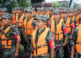| 武警岚皋中队官兵搏击泥石流 营救遇险群众 | | | 面对汹涌而来、漫过膝盖的泥石流,陕西总队岚皋县中队官兵在滚滚的泥石流中连续搏击11个小时,成功解救被困群众53人,转移群众700多人,抢运各类物资价值近60多万元。 | | | 重庆城口堰塞湖险情 武警昼夜奋战转移群众 | | | 7月19日0时10分左右,重庆市城口县庙坝镇场镇至县城方向出现山体滑坡,重大险情直接威胁到城口县庙坝、坪坝镇和四川省万源市大竹镇等场镇和附近村社的上万名群众安全。 | | | 南京军区11支医疗队上堤坝伴随保障抗洪官兵 | | | 19日上午11时,位于江西永修县三角乡段的鄱阳湖大堤上热气腾腾,气温高达38℃,某师官兵300多名官兵搬运沙袋汗流浃背。南京军区庐山疗养院医疗队童卫华等7名军医,在大堤上紧急开设医疗保障点,为救灾官兵送上防中暑、防蛇等药品。 | |
