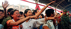 | 一位武警上校率队抗洪的5天4夜 | | | 曹中校是武警安徽总队安庆支队支队长。7月11日,安徽省桐城市大沙河出现险情,曹中校率领400多名官兵五天四夜奋战在大堤上,既当指挥员又当战斗员,哪里有险情,就出现在哪里;哪里最危险,哪里就有他的身影。 | | | 武警某部政委柯新海:抗洪战斗240小时 | | | 柯新海,武警江西总队一支队政委。今年6月份以来,江西出现连续强暴雨,省内第二大河--抚河下游出现超历史纪录洪水。6月19日至28日,柯新海率领320名官兵共转移群众6900余人,抢救病危群众108人。 | | | 洪水中武警战士葛晓威的生命壮歌 | | | 6月21日上午,广东省河源市殡仪馆。千余党政军领导和社会各界群众胸戴白色小花,自发为一名武警战士送行。他就是武警广东省总队河源市支队四中队原副班长葛晓威。5天前,为抢救被洪水围困的群众,他献出年仅21岁的宝贵生命。 | | | 1998抗洪英雄代表:李向群 | | | 长江、漓江、南渡江,三条河流呼唤着同一个名字;荆江、桂林、海南岛,三地人民呼唤着同一个名字;从去年盛夏,到今年早春,在他的家乡,他的军营,在他长眠的大堤和永生的江河,人们一遍遍、一声声呼唤着他--- 李向群! | |