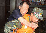 战士背受灾群众上岸