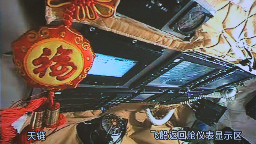 神八返回舱内场景 |