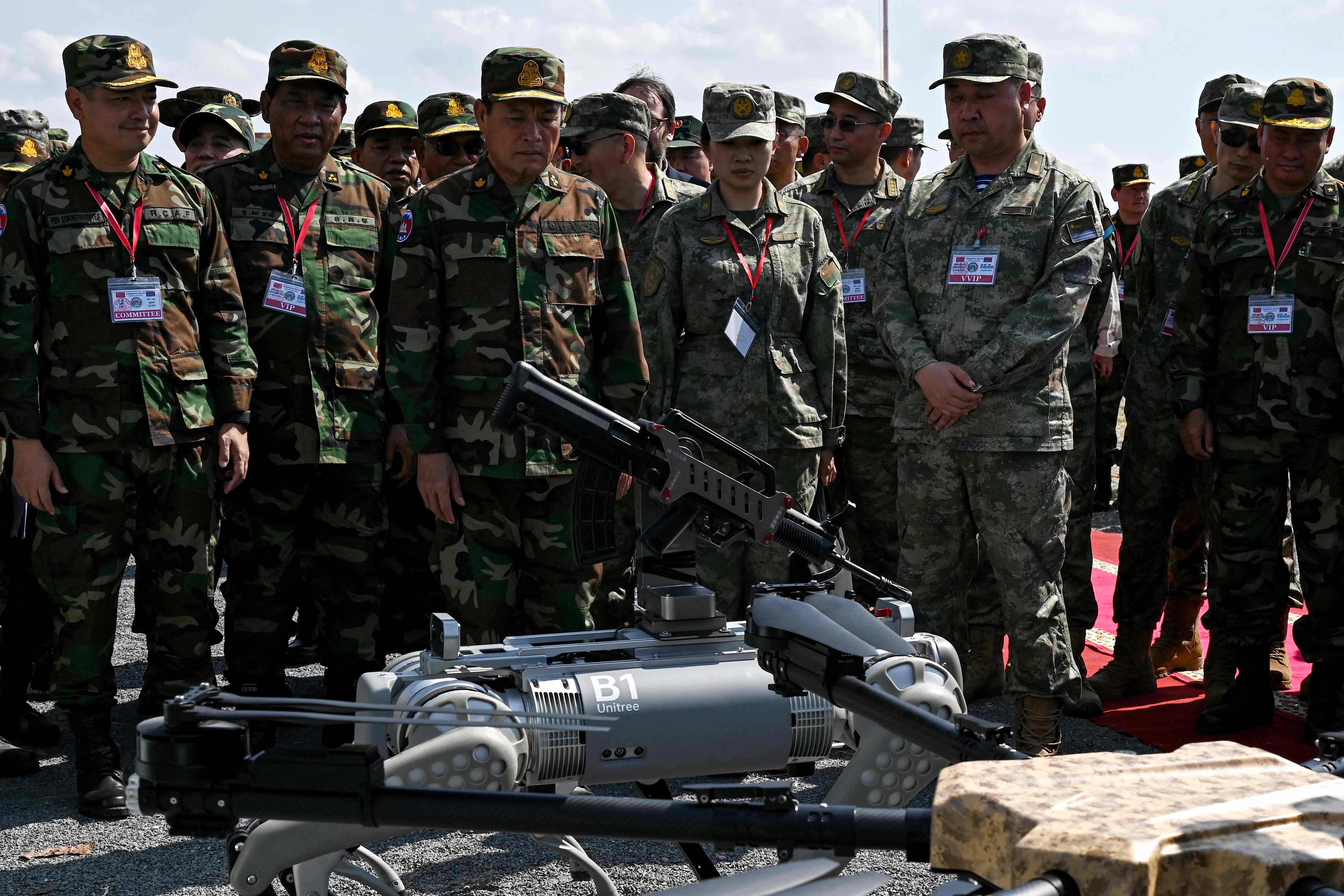 5月16日,在中柬“金龙-2024”联演期间,解放军公开展示了机器狗。(法新社)
