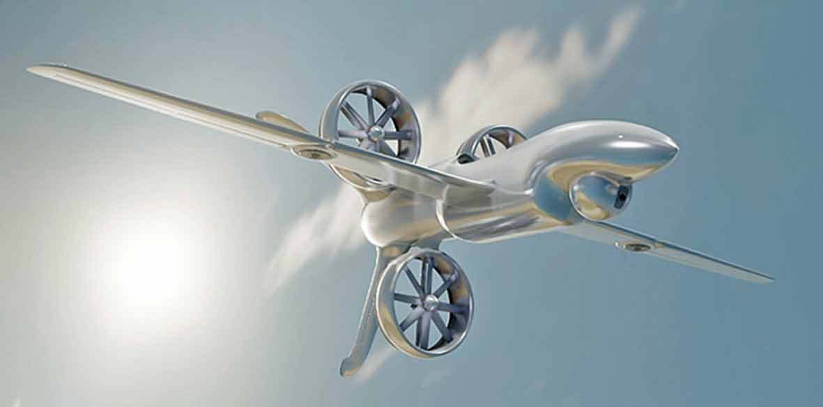 采用垂直起飞方式、在空中平飞的“助手”无人机(渲染图)。