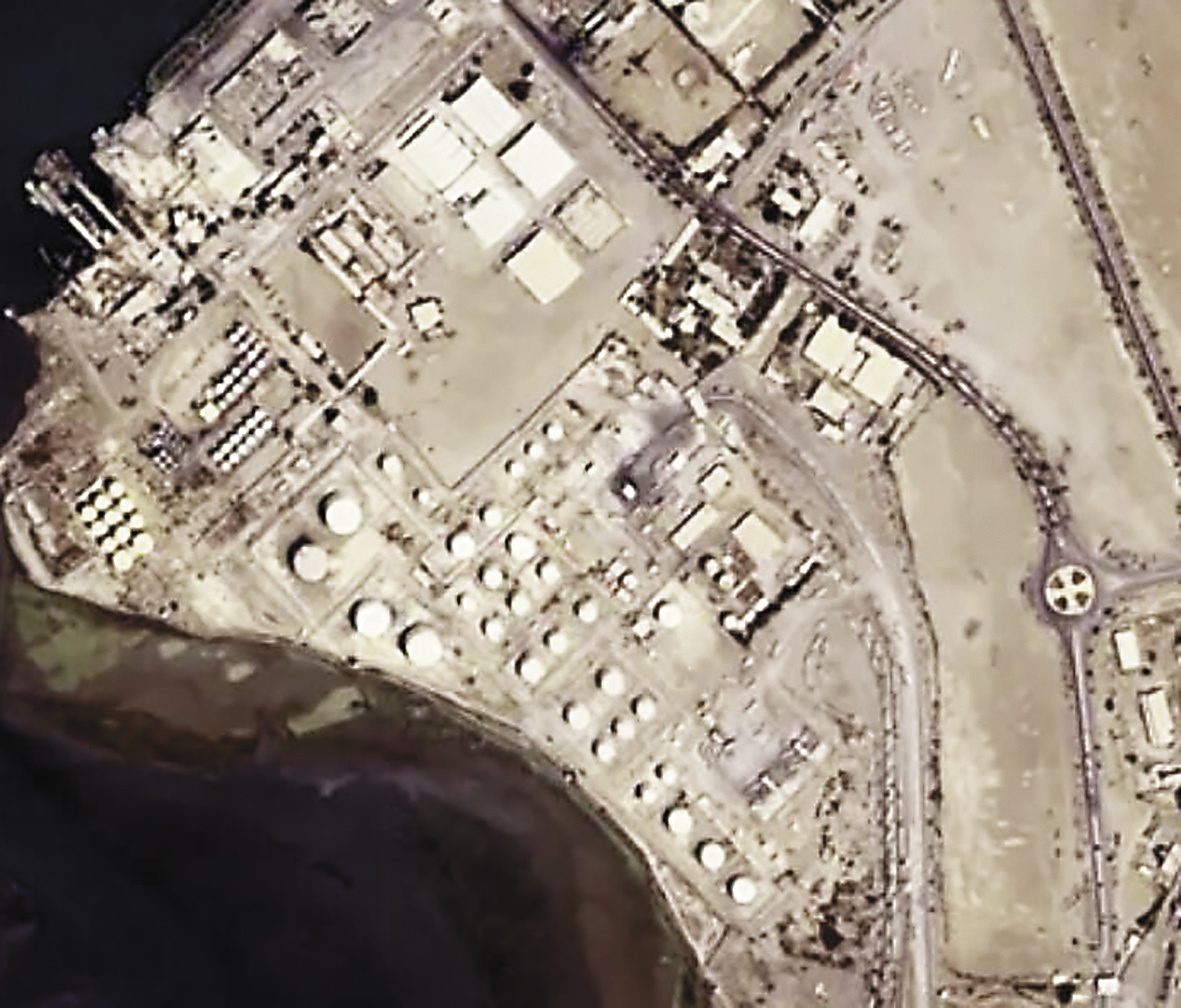 被炸也门港口的卫星图像。