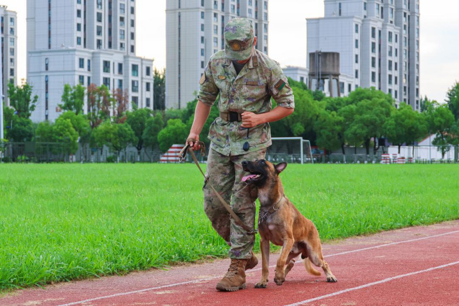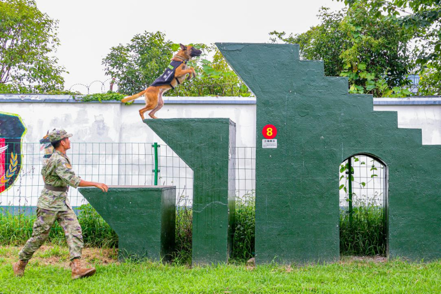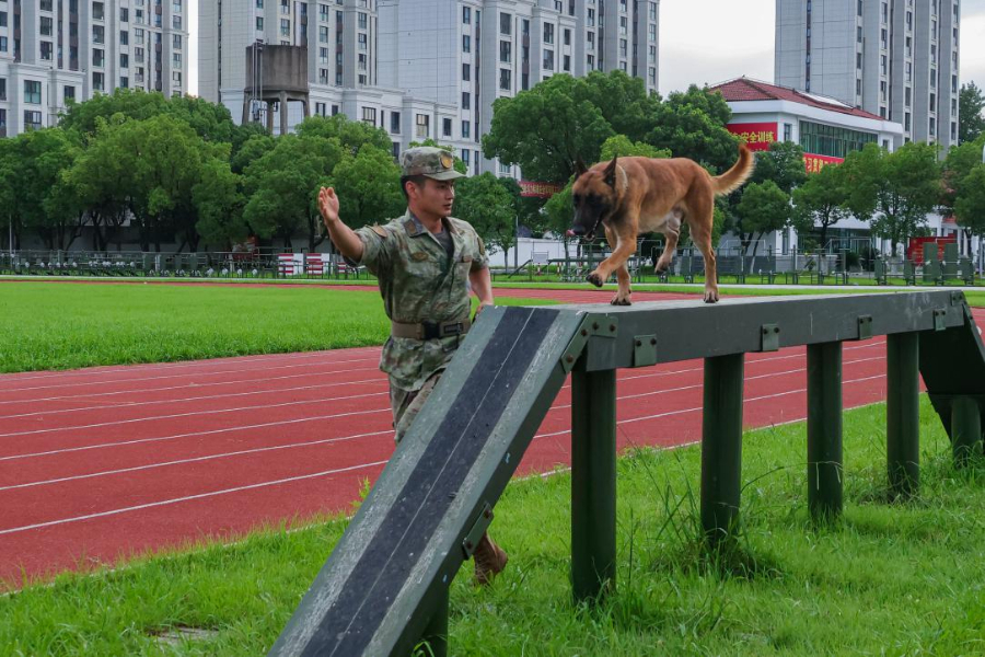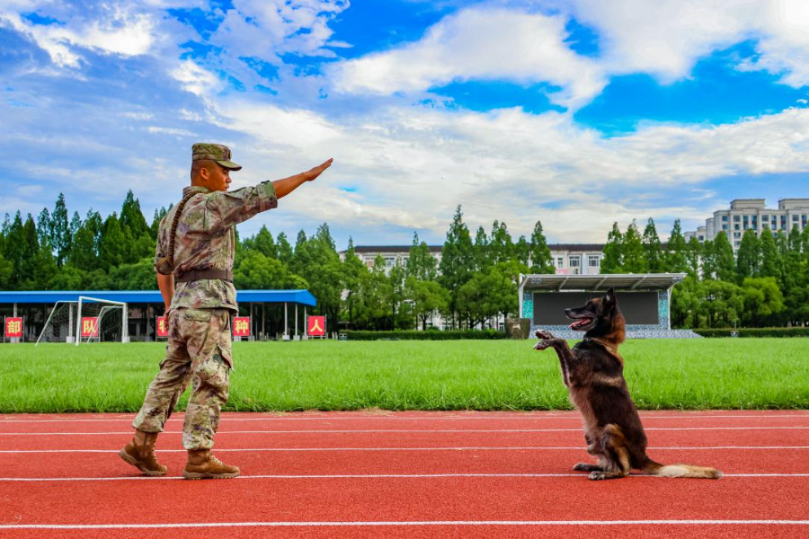 近日,第72集团军某旅组织开展军犬骨干集训,不断强化军犬服从意识和技战素质,进一步锤炼人犬协同作战能力。(王俊杰)