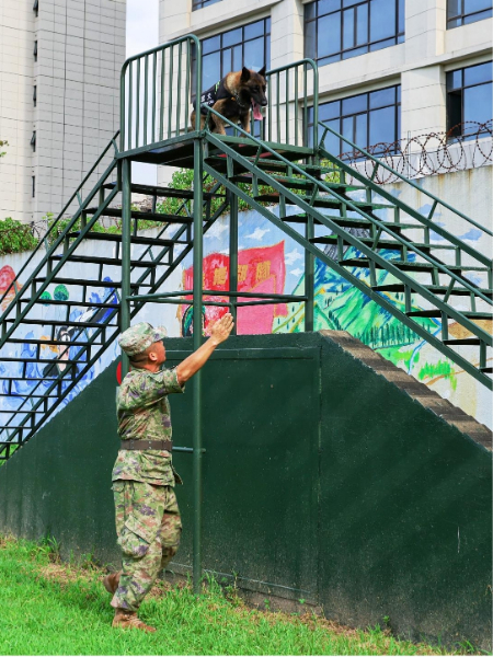 协同军犬障碍训练——攀爬人字梯