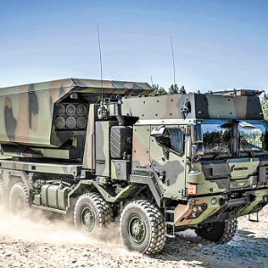此外,信息化、数字化、自动化也是当前火箭炮发展的特点。Euro PULS多管火箭发射系统据称可轻松与外部的C4I系统连接;驾驶室配备有模块化火力控制系统,接到任务后一分钟即可射击;驾驶室后有起重机,可以自动重新装载火箭弹舱。