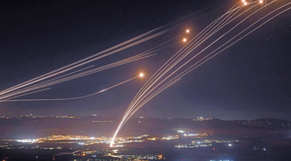 黎巴嫩真主党宣布4日凌晨向以色列北部发射了数十枚火箭弹。以色列称,其“铁穹”防空系统拦截了这些火箭弹。(视觉中国)
