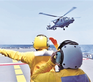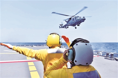 菲海军人员指挥AW159反潜直升机降落在“安东尼奥·卢纳”号导弹护卫舰上