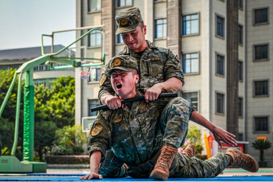 武警警官学院某学员队围绕执勤基础课等内容展开强化训练,熟练掌握并强化哨兵履行职责的基本方法。作为一名未来一线带兵人,学会执勤时如何防止袭击,学会教授哨兵反袭击基本动作,才能圆满完成勤务任务。