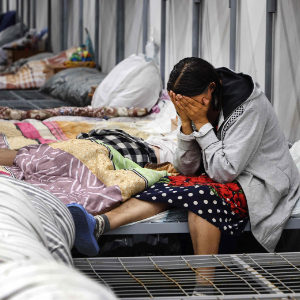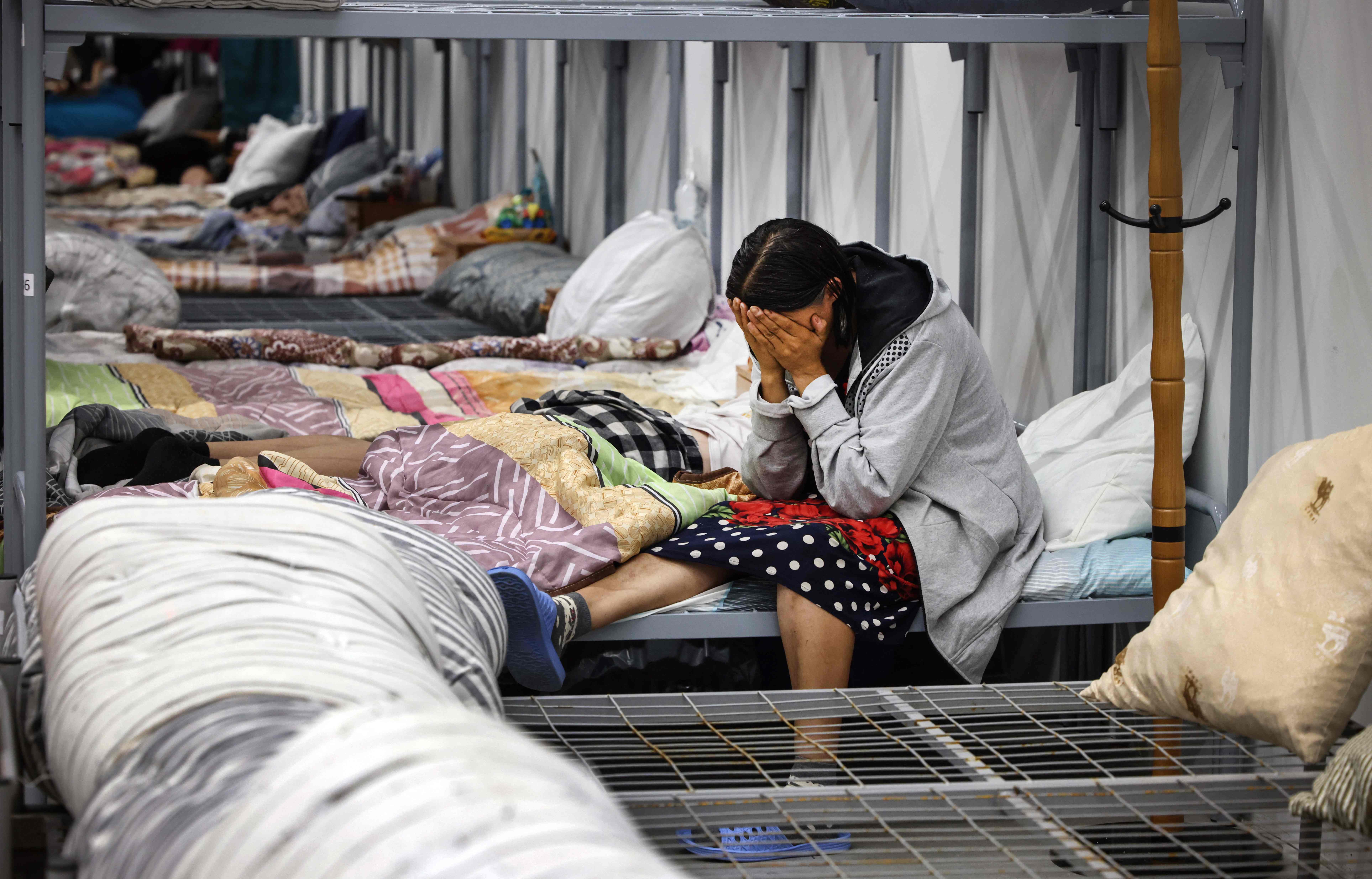 8月29日,俄罗斯库尔斯克地区遭遇乌军袭击,当地民众在居留中心避难。(法新社)