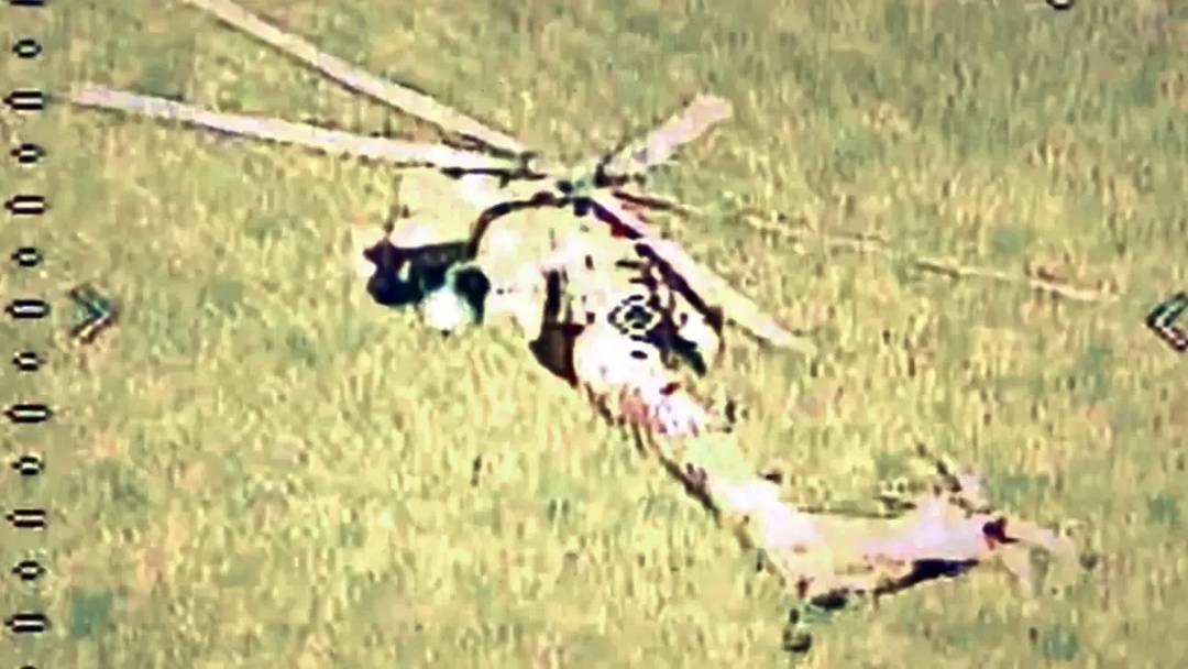 俄罗斯米-28武装直升机在被乌克兰FPV无人机击中前。
