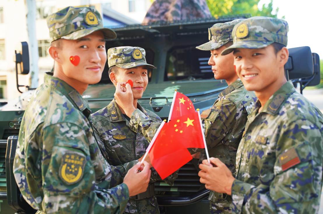 与国旗同框,是军人内心最深情的告白。武警山东总队烟台支队官兵用最灿烂的笑容与国旗同框表达自己对祖国的热爱(杨一鸣、张晶明、张凌峰)