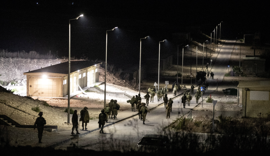 10月13日,以色列士兵从宾亚米纳附近遭无人机袭击的地点旁走过。(路透社)