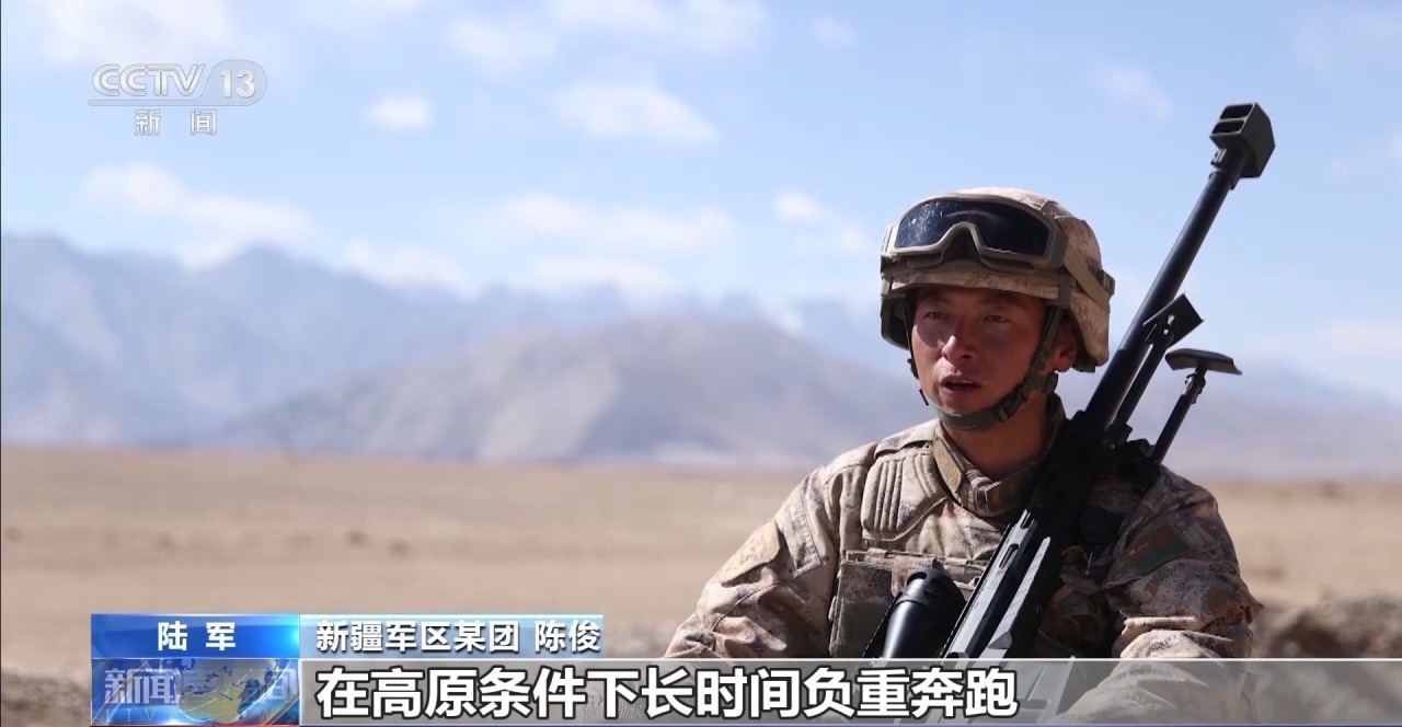新疆军区某团 陈俊:在高原条件下长时间负重奔跑,加上风沙的影响,对狙击手来说都是非常大的挑战,我们在平时训练中特别突出注意力和呼吸的调节,才能保证在实战条件下也能稳定击发,打出好成绩。