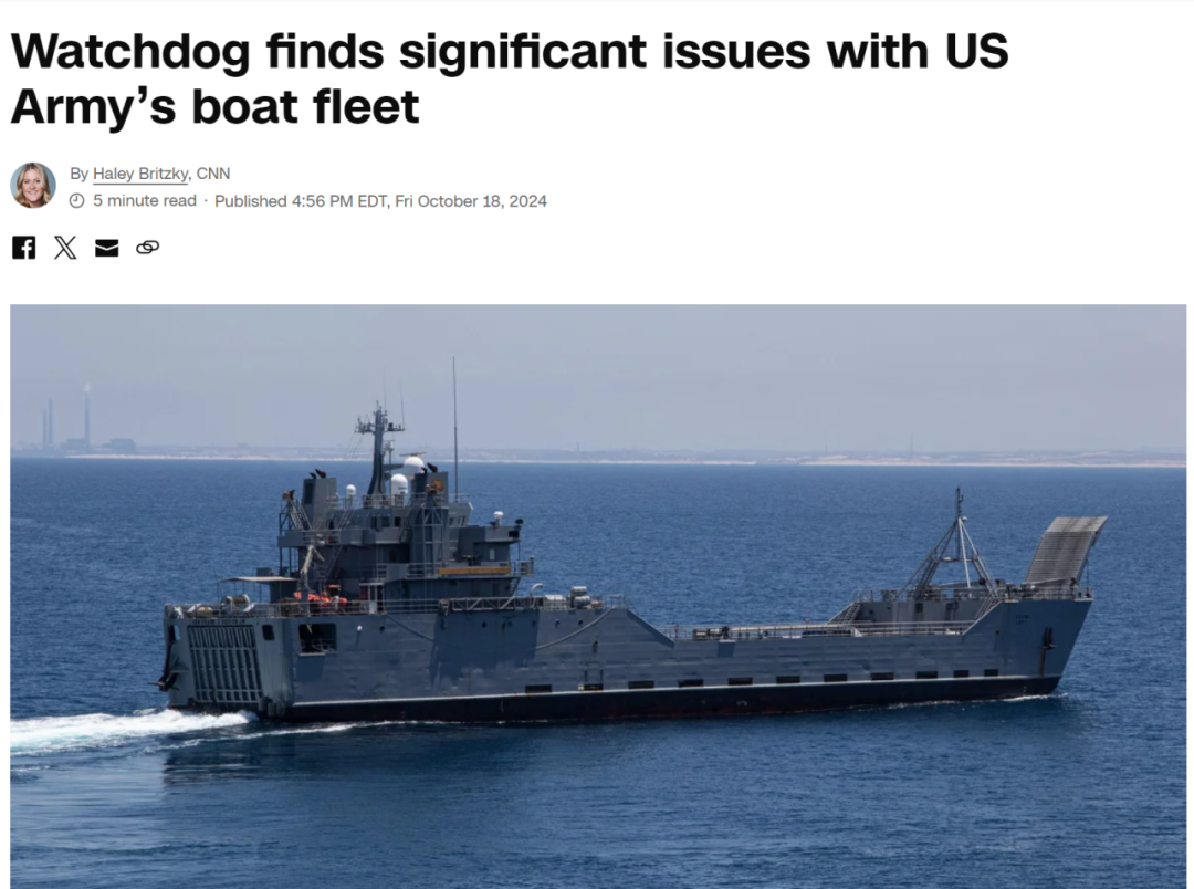 10月16日,美国政府问责局发布报告称,隶属于美国陆军的水上舰艇面临严重问题,这限制了“满足印太战区对陆军水上舰艇最为迫切的任务要求”的能力。