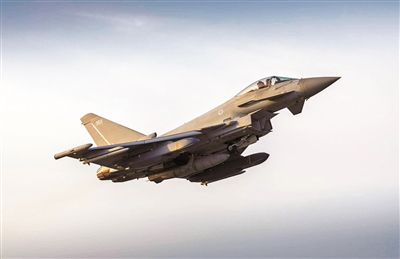 搭载“风暴阴影”空射巡航导弹的英国空军“台风”战斗机。