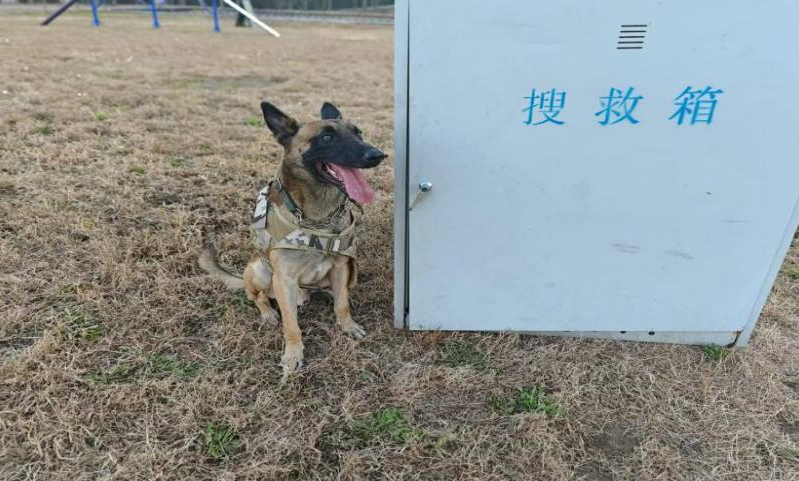 二号犬“雷诺”,雄性马里努阿犬,2017年11月出生,是一只搜救犬,身体状况良好,性格活泼,反应迅捷,耐力较强,擅长穿越障碍、箱体搜救。
