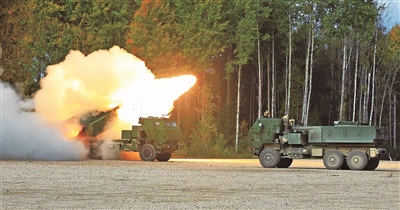 美军在爱沙尼亚发射“海马斯”火箭炮。俄乌冲突爆发后,欧洲多国从美国大量采购该武器系统。
