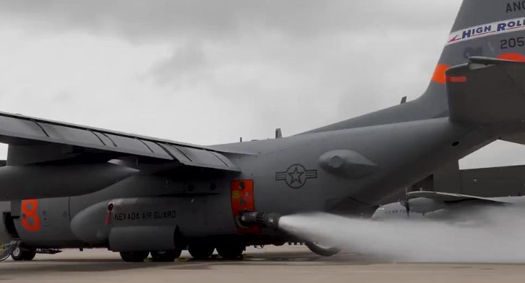 近日,美国加州空中国民警卫队发布了一段视频,展示其出动C-130J运输机,该运输机装备了“模块化机载消防系统”(MAFFS),并以低空飞行的方式进入加州火场,成功投放了大量灭火剂。