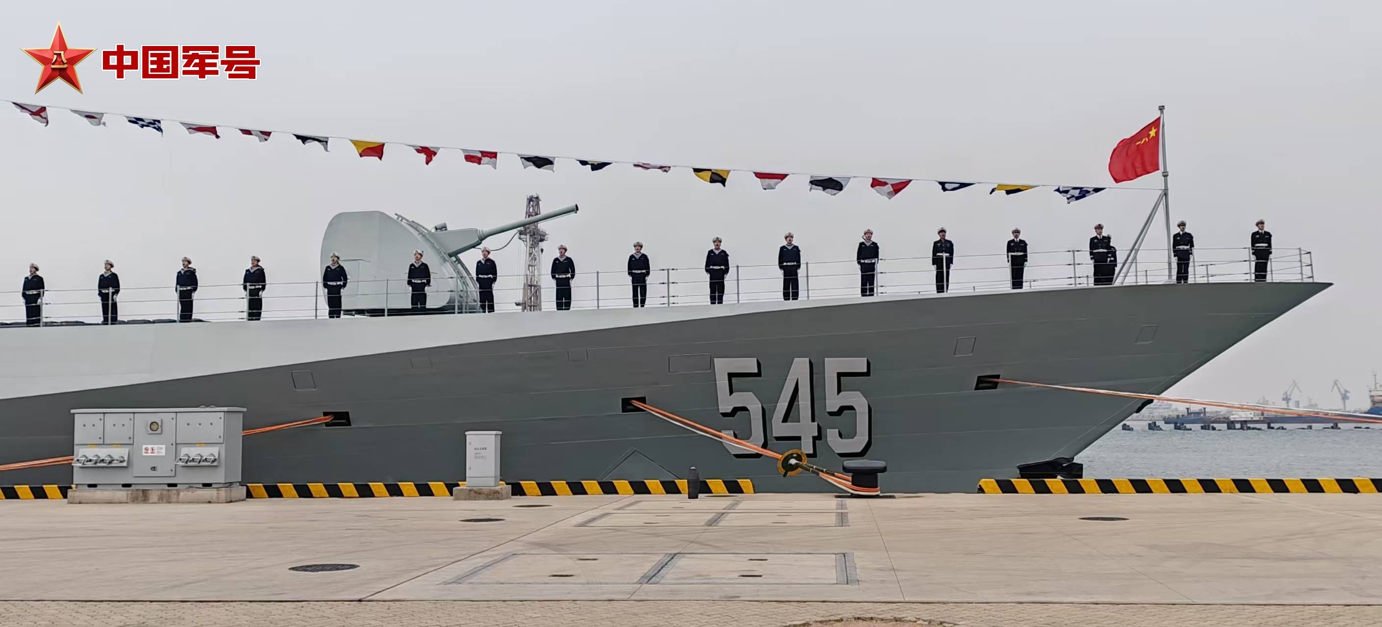 这次交接入列的中国人民解放军海军漯河舰,舷号545,是我国自主研制建造的新一代护卫舰,是海军转型发展的重要装备,排水量约5000吨,各项性能显著增强,在舰艇隐身技术、作战指挥系统、火力集成控制等方面取得突破,具备较强的综合作战和遂行多样化军事任务能力,对提升海军舰艇编队整体作战效能具有重要意义。