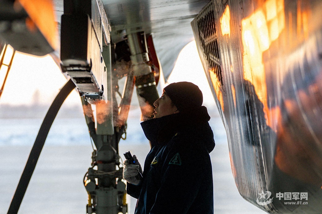 停机坪上,战机蒙着一层薄薄的冰霜,在凛冽寒风中静默待发。机务人员如往常一样,在严寒中一丝不苟地对战机进行着起飞前的检查维护。他们仔细检查每一个部件,不放过任何细微的安全隐患。