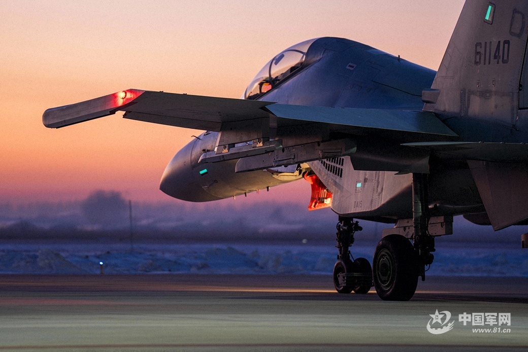 战机在暮色中滑向起飞线。