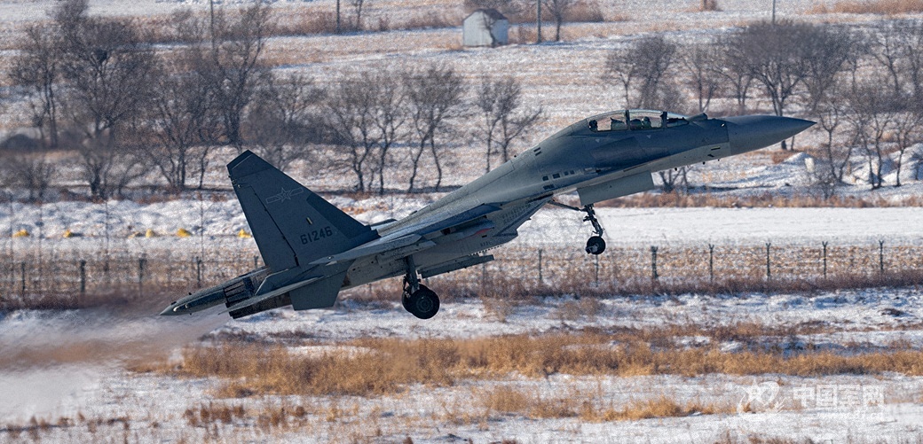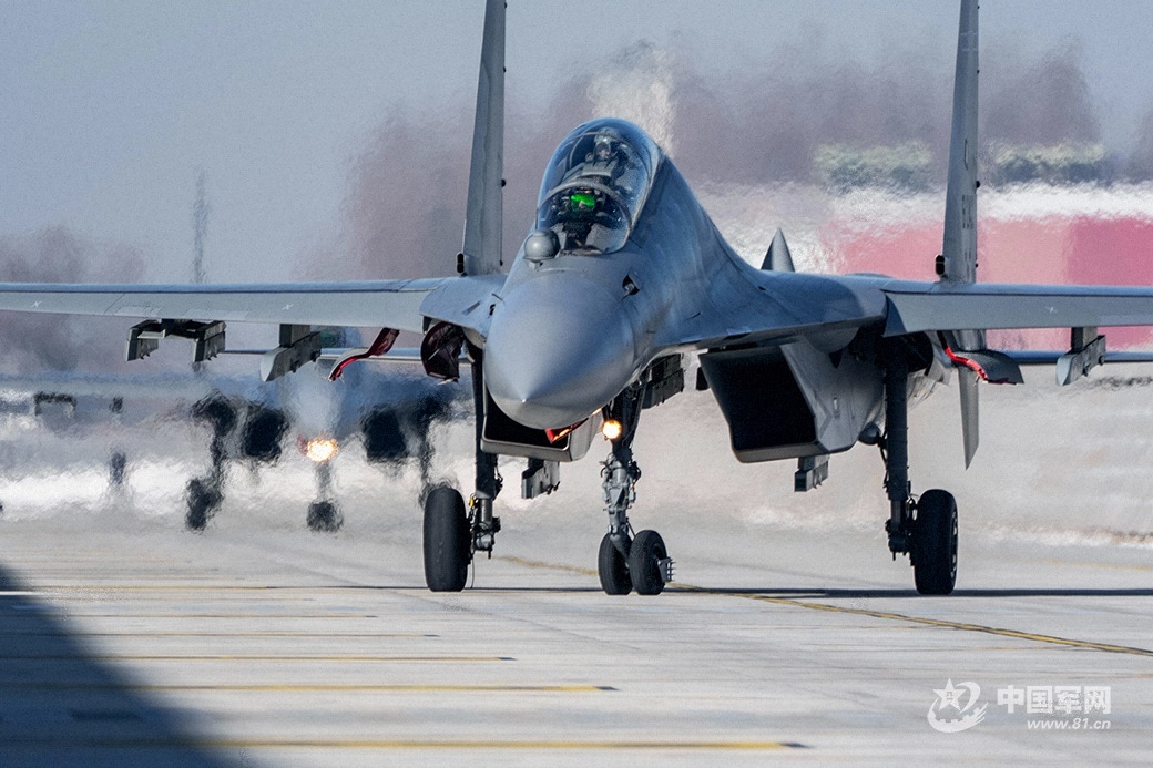 “计时起飞!”随着塔台指令下达,首架战机发动机骤然轰鸣,强大的气流卷起地面的积雪,炽热的尾焰瞬间驱散了寒冷。战机如离弦之箭迅速升空,直插云霄。紧接着,一架又一架战机依次呼啸而起,编队向训练空域飞去,机群划破长空的轰鸣声在机场上空久久回荡。