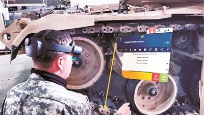 美军人员利用人工智能设备辅助进行装备维修保养。