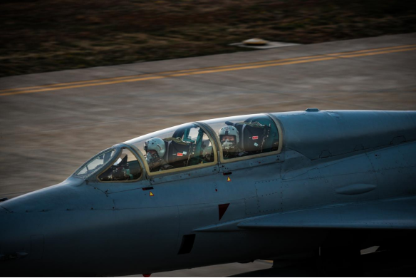 飞行员操纵战机驶出滑行道 黄荣开摄