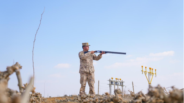 地面保障分队开展场区驱鸟警戒 黄荣开摄