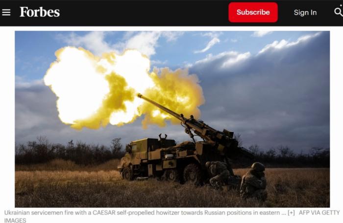 乌军用法国援助的卡车炮开火。图/美国《福布斯》杂志网站