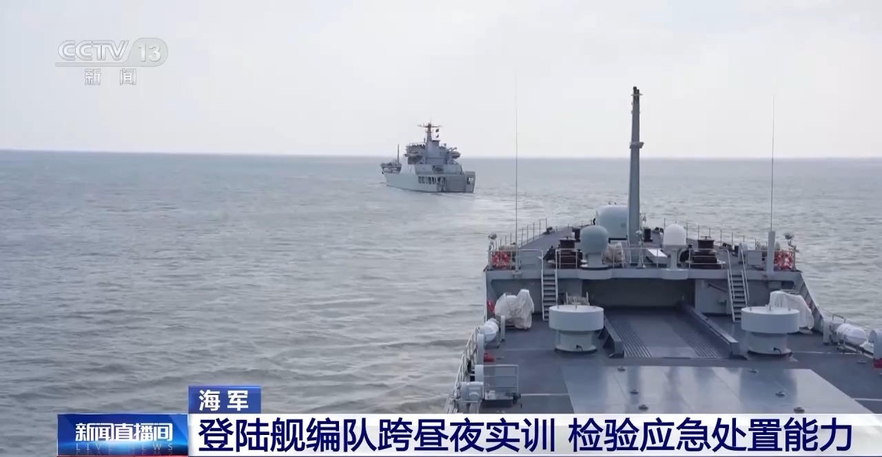 日前,海军某登陆舰大队天柱山舰、大青山舰组成舰艇编队,赴黄海某海域开展为期多天的跨昼夜、多课目实战化训练。