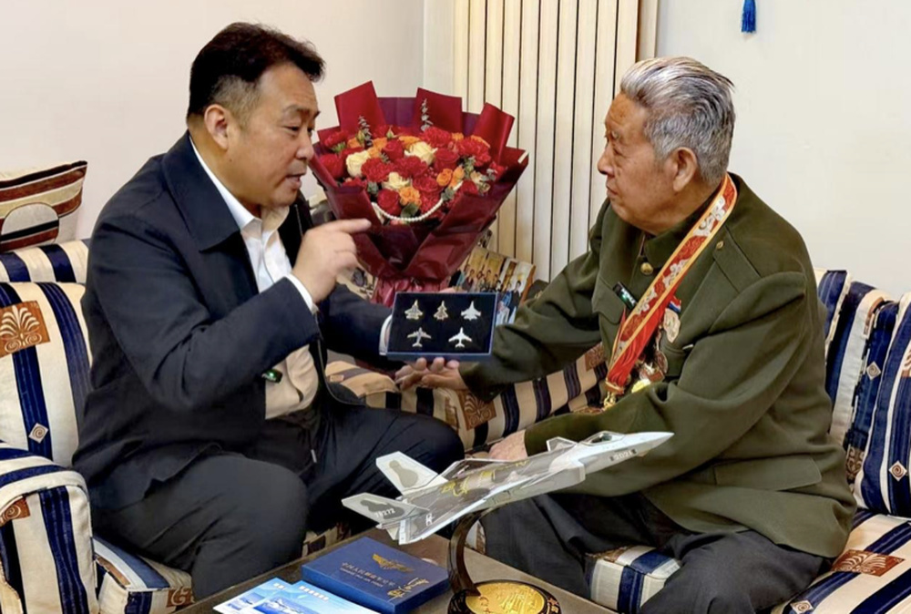 说完歼-20话题,申进科顺手打开那盒“五机同框”徽章,他给老人家介绍:这是歼-20,这是歼-35,这是歼-16,这是运-20……指到运-20时,申进科说,被誉为“和平之鹰”的运-20,飞遍全国、飞向世界。运-20的航迹,遍布亚洲、非洲、欧洲和大洋洲,把人类命运共同体理念传扬世界。在接迎志愿军烈士遗骸回国回家任务中,运-20和歼-20组成空中编队,以“双20”同框这种“强军画卷”来告慰抗美援朝英烈。