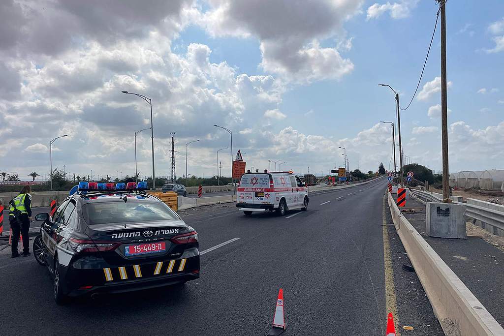 5月4日,以色列特拉维夫,也门胡塞武装发射的导弹落在本-古里安国际机场附近,警方封锁了机场入口,允许救护车通行。(视觉中国)