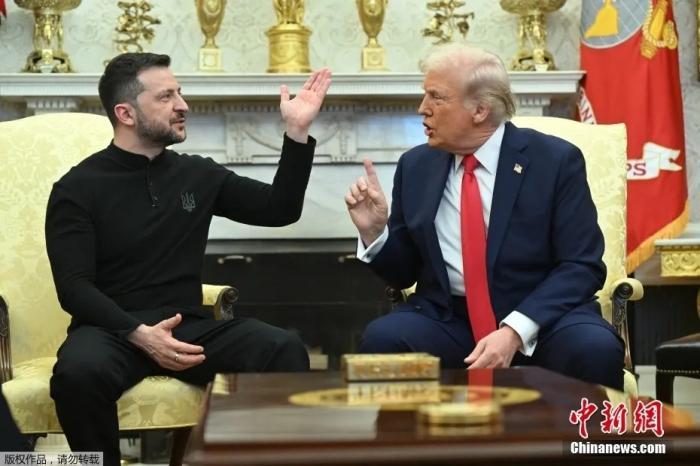 资料图:当地时间2月28日,美国总统特朗普与乌克兰总统泽连斯基在白宫举行会谈。会谈过程中,双方爆发激烈争吵,泽连斯基提前离开白宫。图为特朗普与泽连斯基会谈现场。