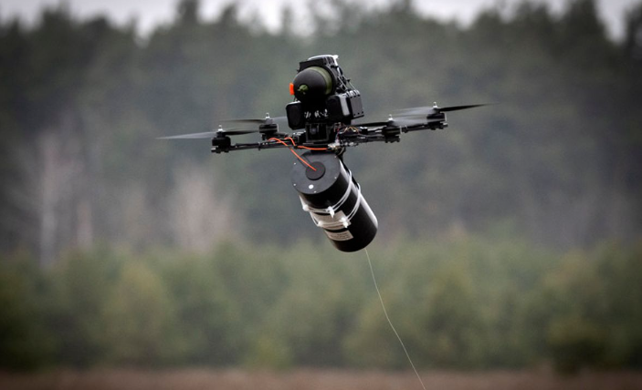 到了2025年,FPV光纤无人机成为这个战场上的“黑暗霸主”。这种无人机由俄军首先引入战场,它与常规FPV型号一样,基于四轴飞行器设计,顶部携带电池,下方携带弹药。