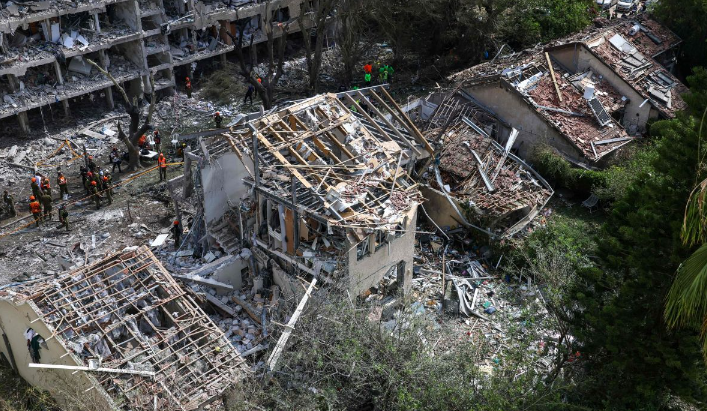 以色列公共广播公司“第11频道”播出的画面显示,一栋建筑被夷为平地,周围堆满瓦砾,该媒体称该建筑位于以色列中部地区。此前,从当地时间上午7点30起,以色列连续遭遇两波导弹袭击。