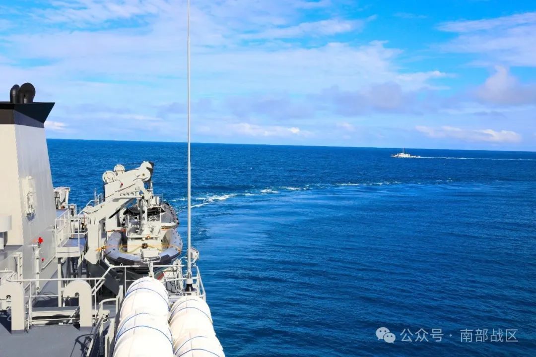 南海某海域,波浪翻涌,战舰驰骋。近日,南部战区海军某勤务船大队组织舰艇编队,辗转多个训练海域,围绕实际使用武器、综合防御、舰艇操纵、海上救生等多个课目展开训练。