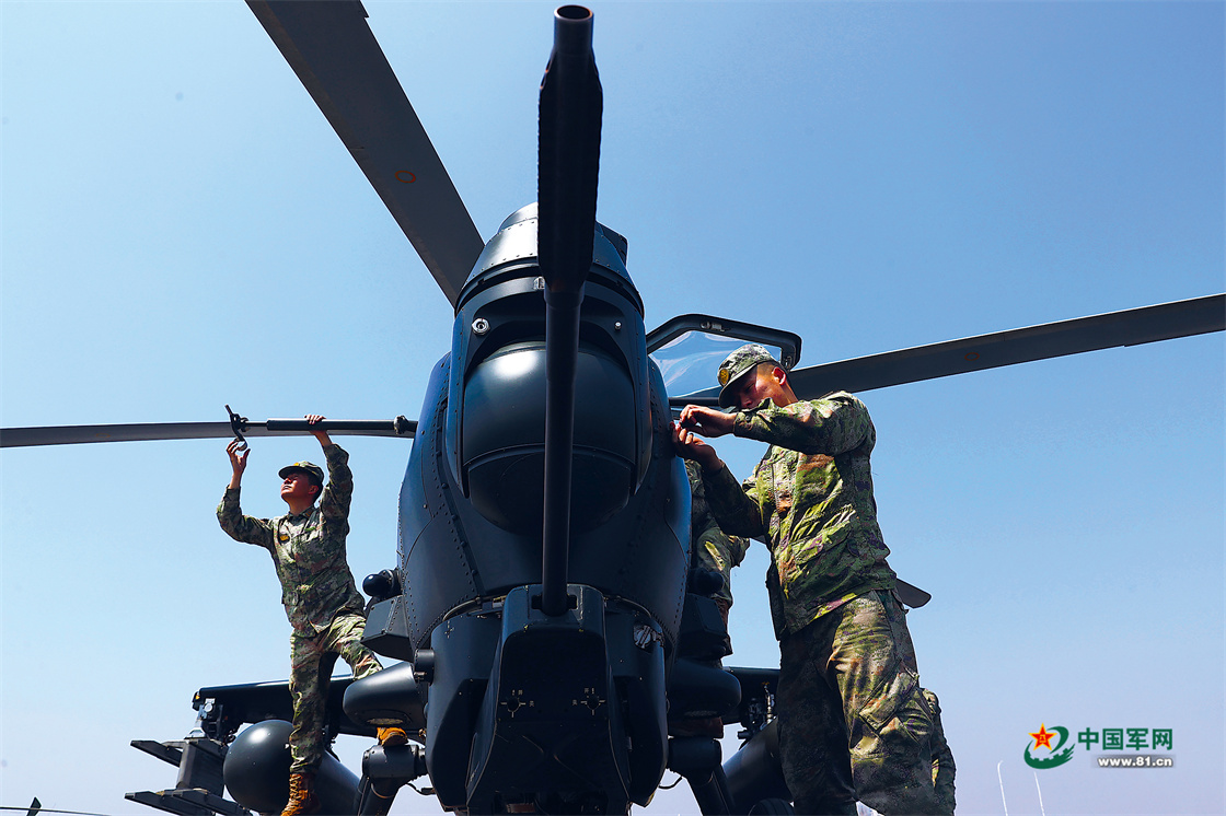 到达目标地域上空,编队迅速进入战斗状态。瞄准、锁定、发射……在捕捉到“敌”目标的瞬间,武装直升机立即开火,实施精准打击。