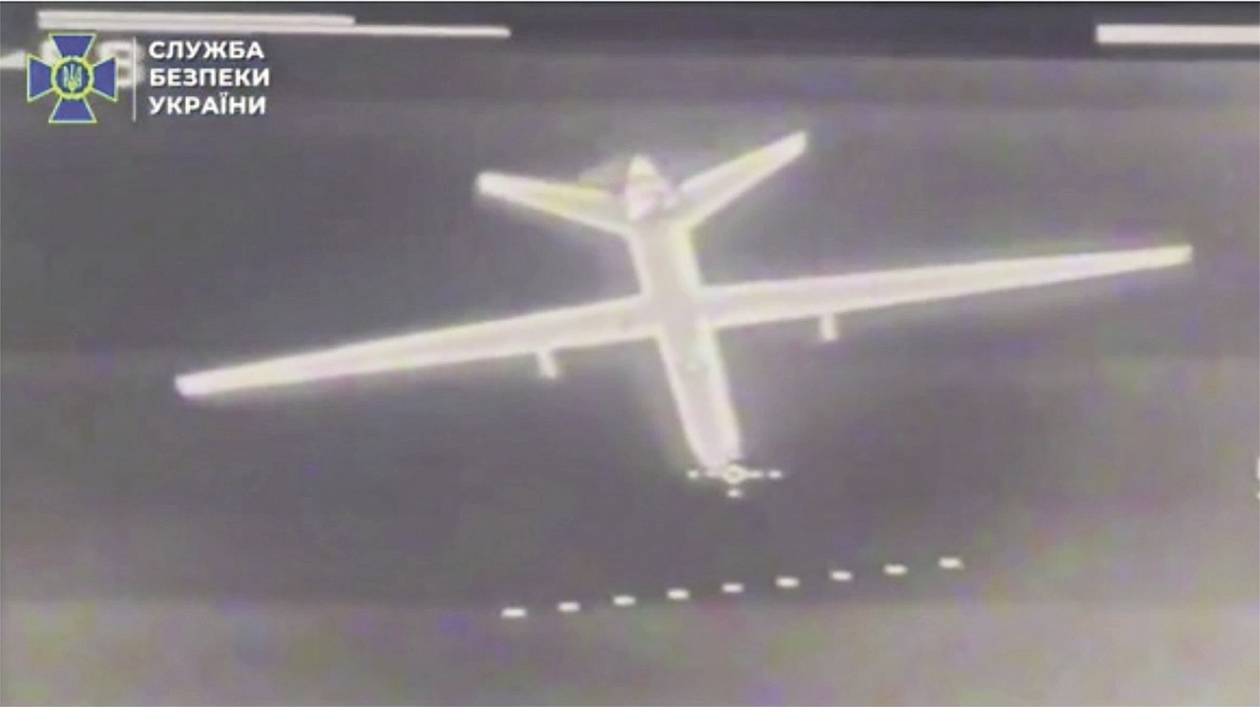 乌克兰安全局发布的据称是乌军FPV最后撞击前拍摄的俄军“猎户座”无人机的影像