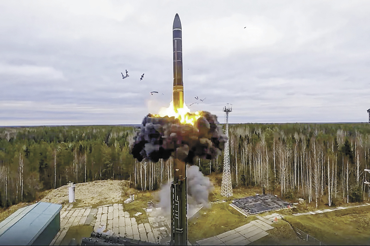 “榛树”高超音速导弹被认为沿用了“亚尔斯”洲际导弹的技术,图为“亚尔斯”导弹发射瞬间。