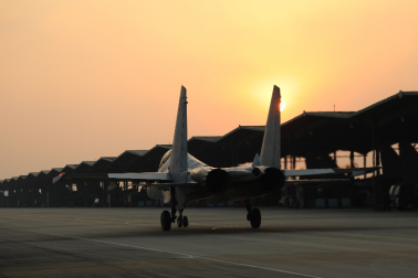华东某机场,一发信号弹撕裂长空。东部战区航空兵某旅一场跨昼夜、高强度实战化对抗训练,在震天轰鸣中拉开战幕。数架战机依次加力滑跑,如利剑出鞘直刺苍穹,在空中迅速完成战术编组。